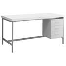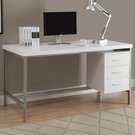 60 inches long.This desk, with its silver metallic base, will fit perfectly in any room in the house.