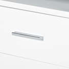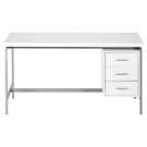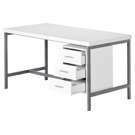 This contemporary and practical white-finish desk offers you a lot of functionality.