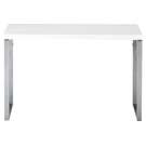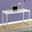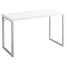 With its simple lines, thick panel construction and silver metal legs, this desk will add sparkle to your workspace.