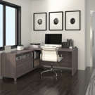 With clean lines and a modern design, this contemporary L-shaped desk is ideal for any workspace.