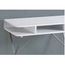 This sleek and minimalist white writing table has three open compartments that take care of all your office supplies while keeping the surface clean and tidy.