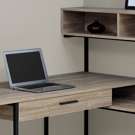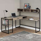 Be inspired by this practical and modern L-shaped desk. It is finished with dark taupe wood-effect on each side and accented with a solid black metal frame.