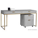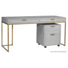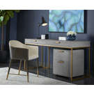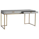 Design a space for creativity with this eye-catching desk from our MIXT collection. Covered in bonded leather with a textured shagreen finish and antique brass hardware. Two drawers offer ample storage. Pairs beautifully with coordinating file cabinet (sold separately).
