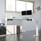 L-shaped Standing Desk with Storage and Double Monitor Arm