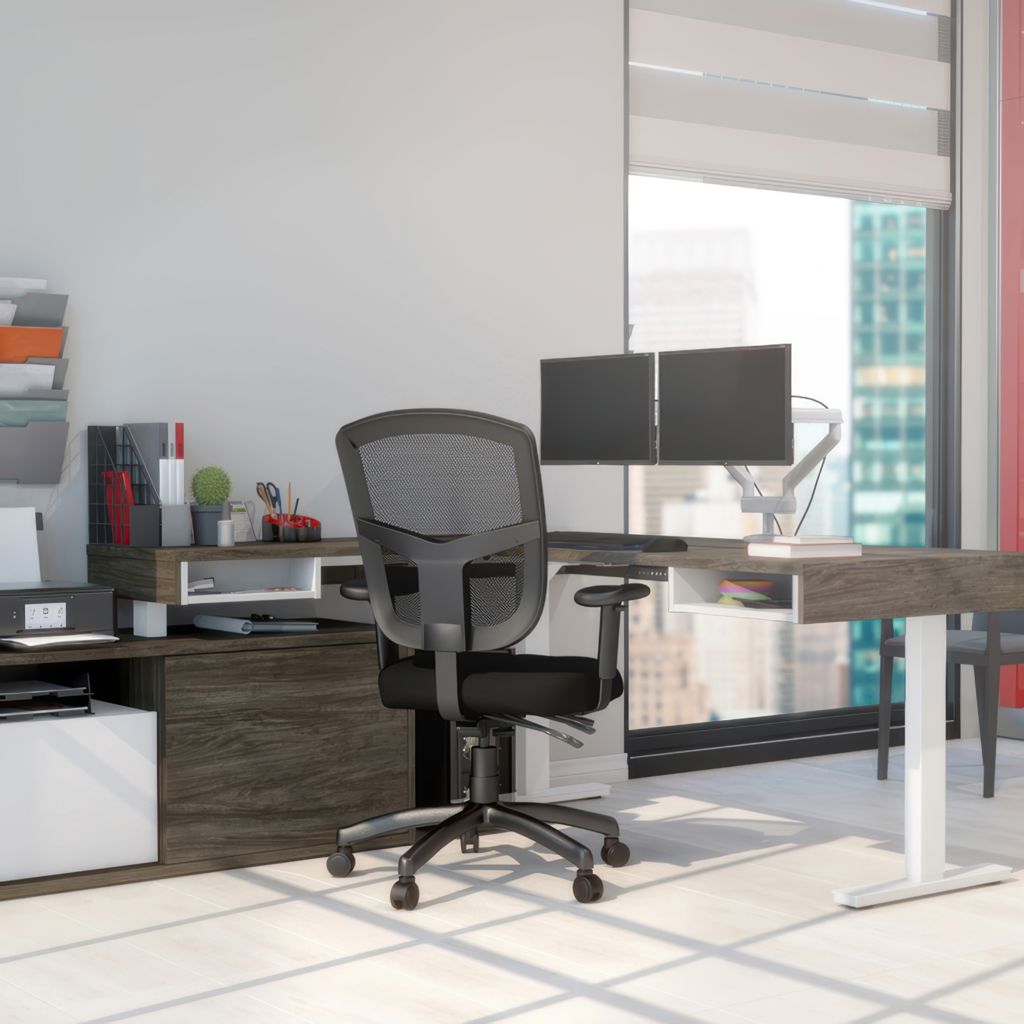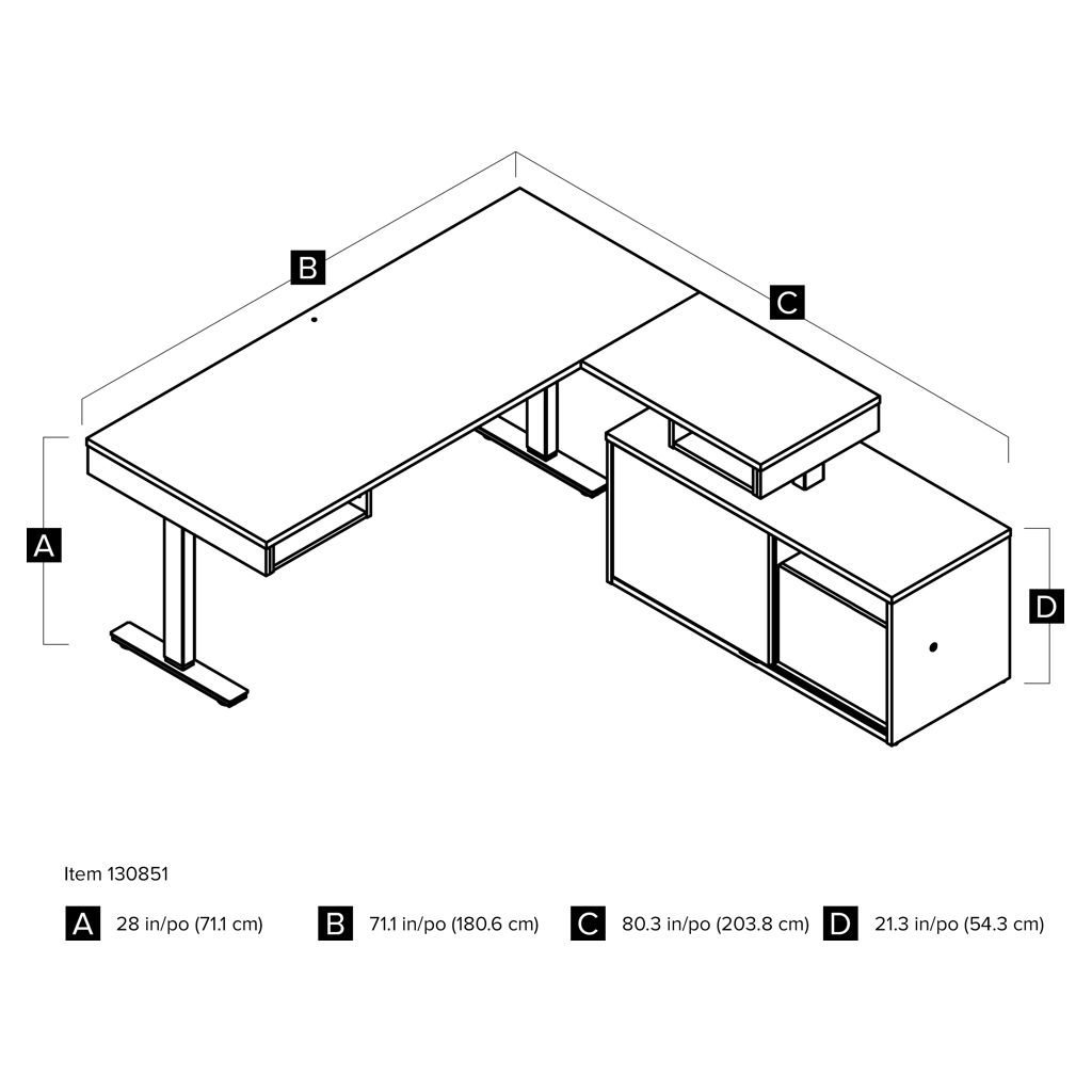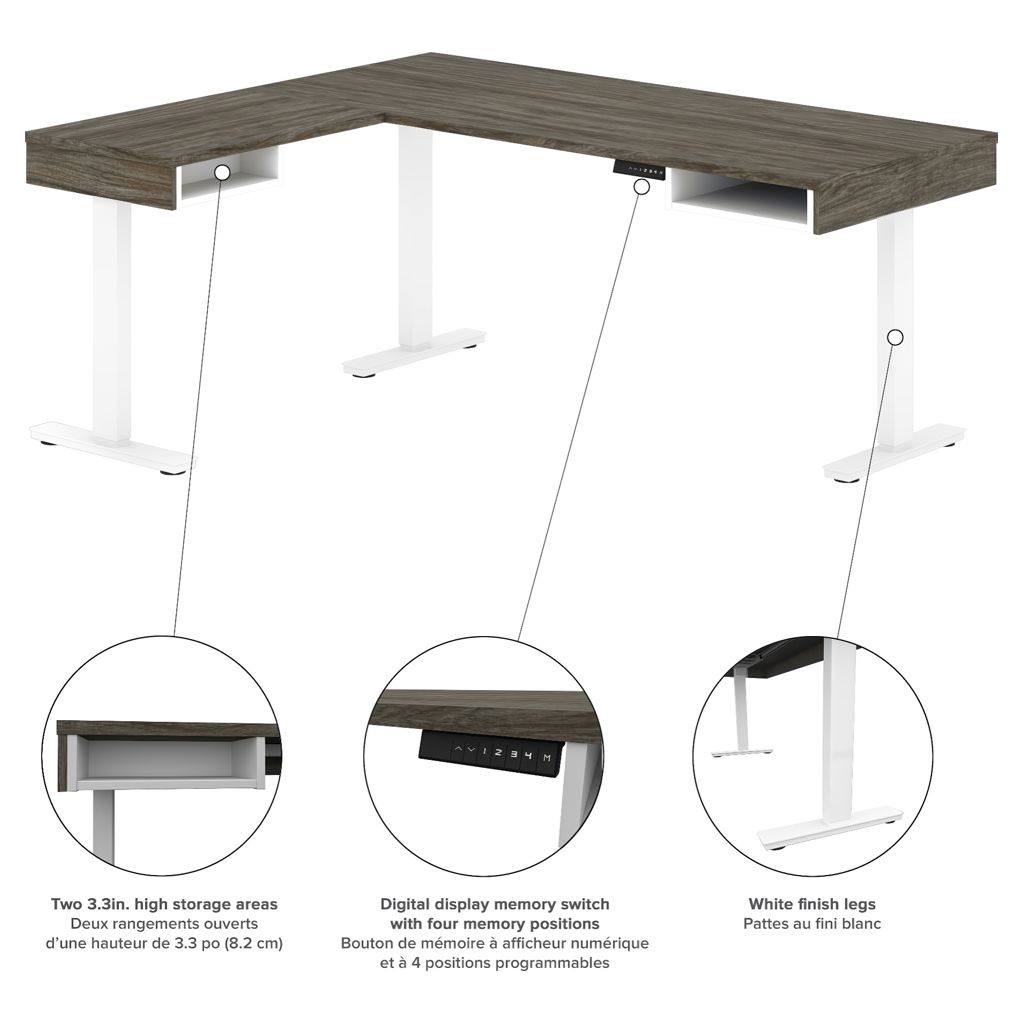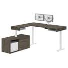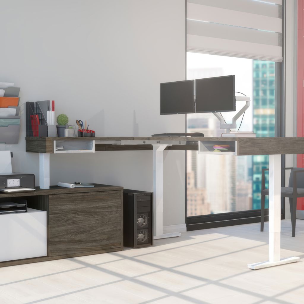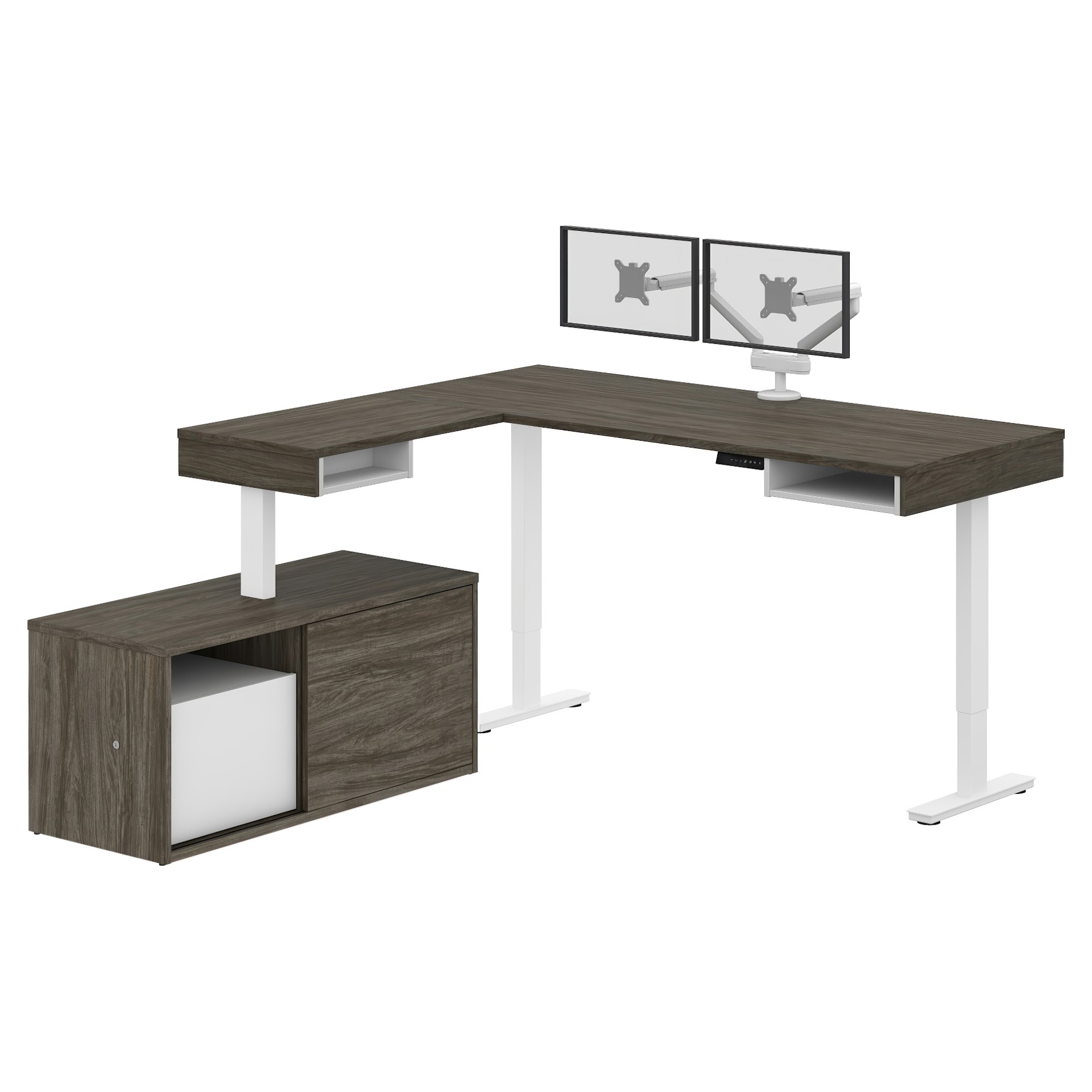 L-shaped Standing Desk with Storage and Double Monitor Arm Bestar 130851-000035