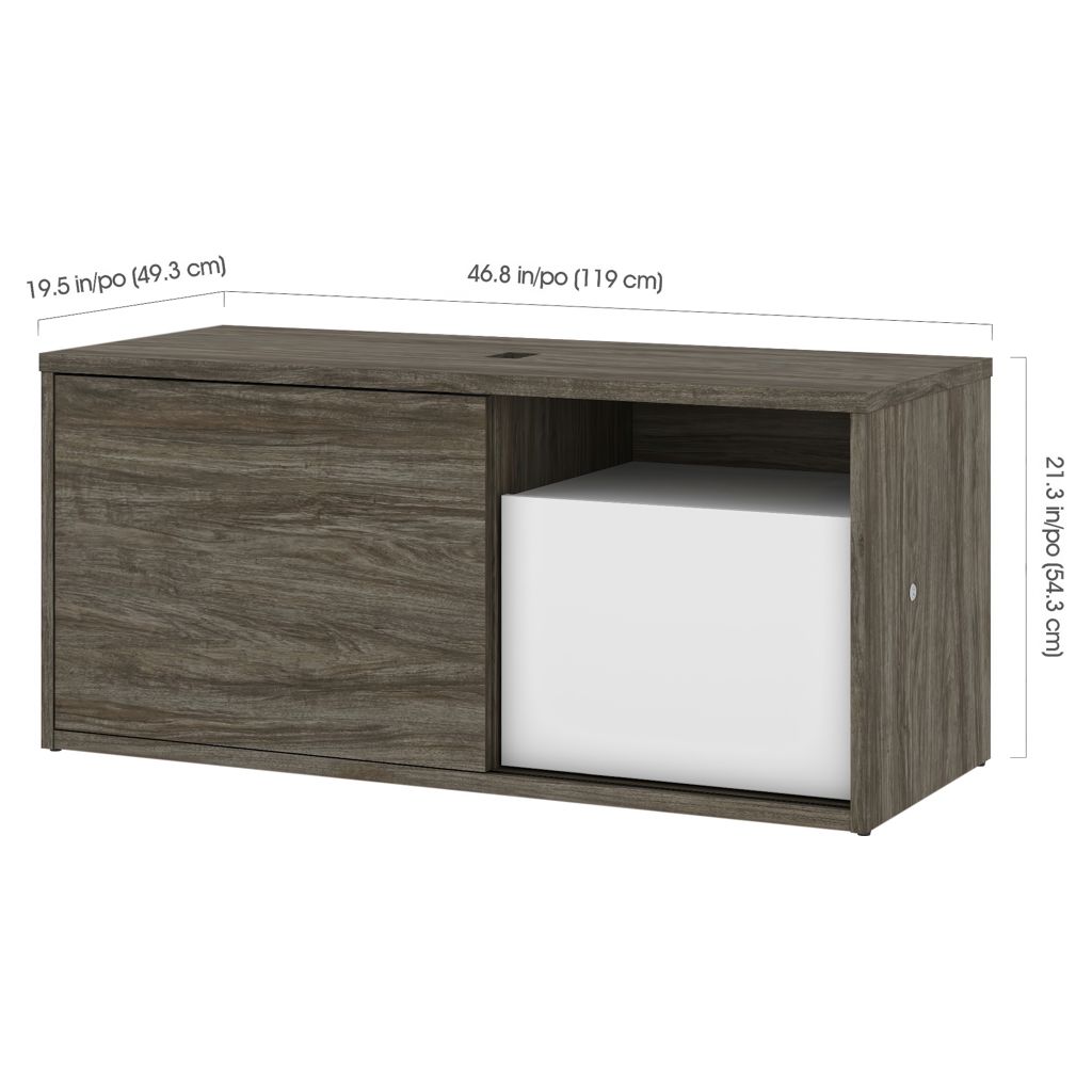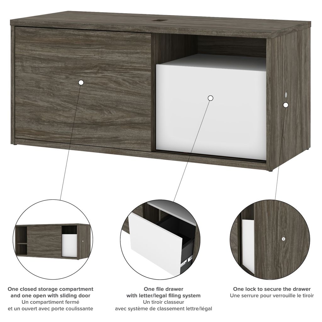AMAZING STORAGE: The credenza offers a file drawer with a letter/legal filing system and a shelf behind the sliding door. The desk offers two 3.3" high storage compartments. Maximize your work surface with the dual monitor stand.