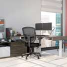 QUALITY MATERIALS: The desk and credenza are made of high-density, commercial-grade particleboard that meets Carb 2 standards. The work surface is 1" thick with a melamine finish. Includes a monitor stand for 14" to 32" displays that's made of aluminum and stainless steel.