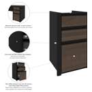 Two utility drawers and one file drawer with letter/legal filing system. Drawers on ball bearing slides. The bottom two drawers are lockable.