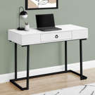 This white computer desk offers a large centre storage drawer topped with a chic black handle. Ideal for your home office, or as a side table or console.