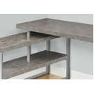 It is finished in gray faux concrete laminate with a silver metal base.