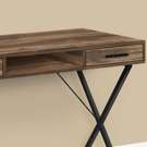 Designed for small homes, apartments or condos, this space-saving desk is supported by sturdy black metal X-shaped legs to ensure stability and a comfortable working environment.