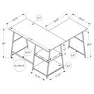 This desk is 100% functional, starting with its spacious workspace in a gray faux wood finish. The black metal easel-style base supports 2 open shelves that can be used to hold books, storage boxes or other decorative items. This compact L-shaped writing desk with industrial design optimizes space and storage so you can maximize your productivity.