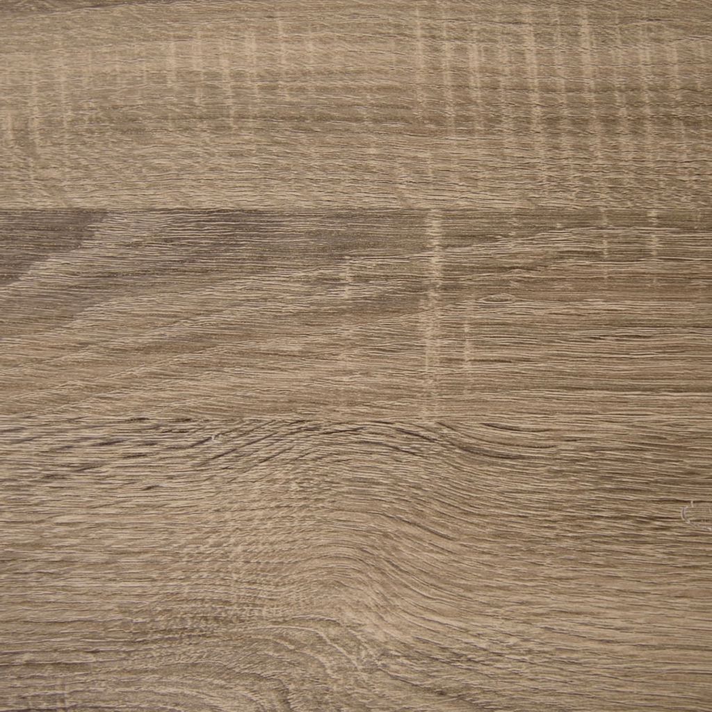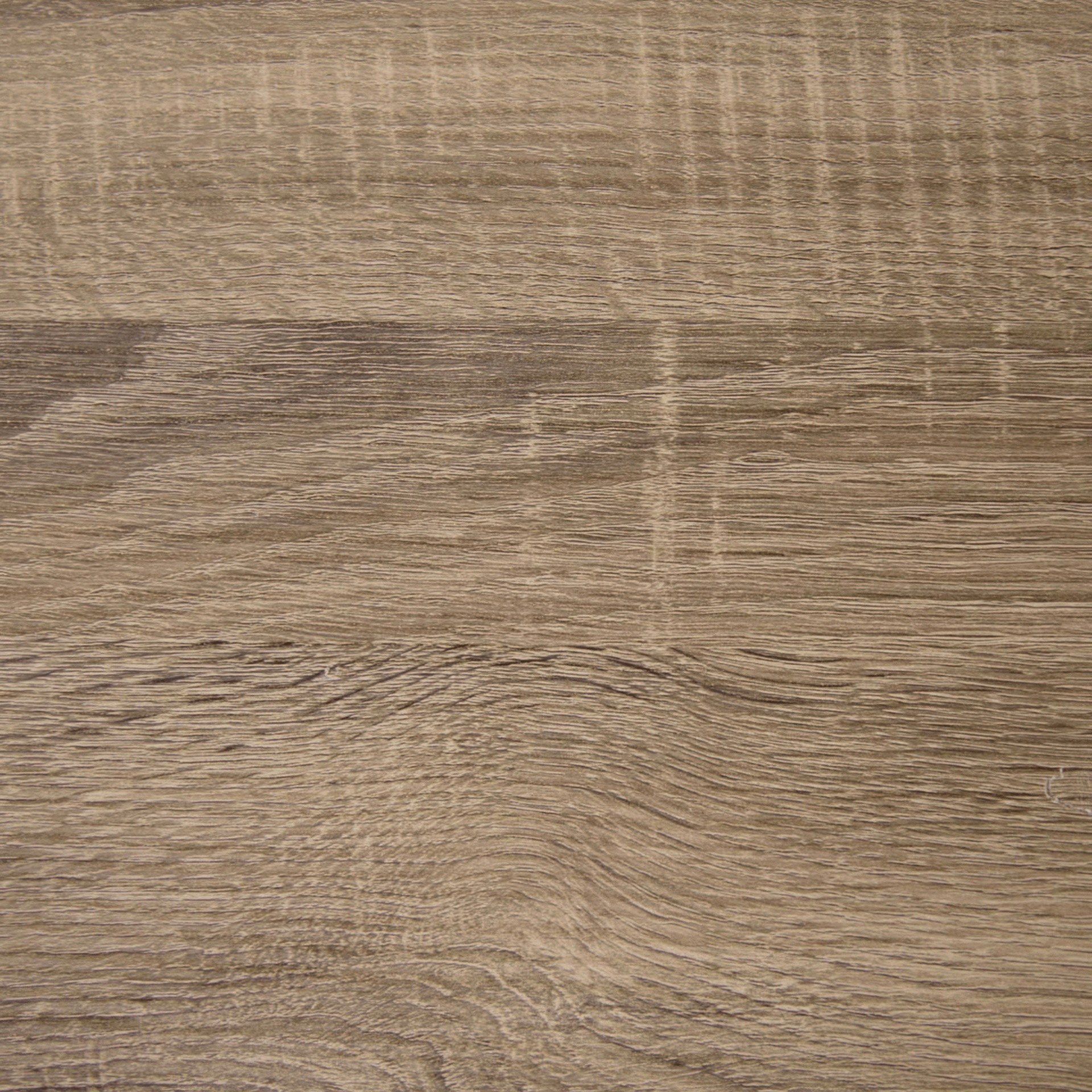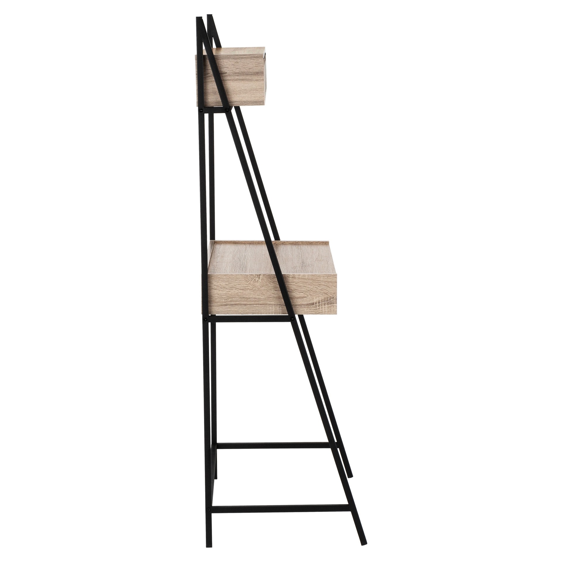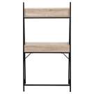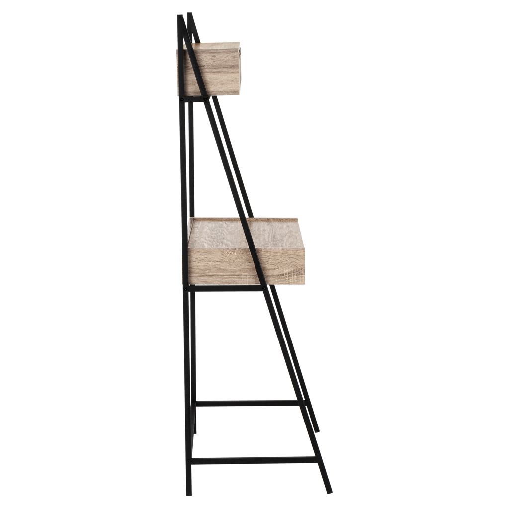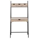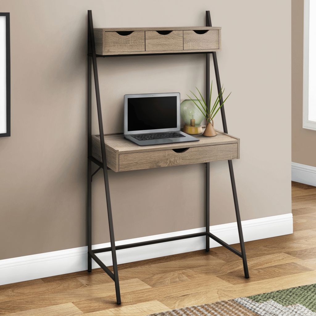 Contemporary style workstation in an elegant taupe wood-look laminate finish. Strong black metal framing to hold a spacious work surface to place a laptop, lamp, and office accessories.