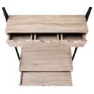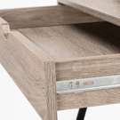 Finished in a warm, dark taupe wood-look laminate with a sturdy black metal frame, this compact workstation has enough surface area to place a laptop and a small lamp, with a long drawer on metal glides to tuck away easy to reach office essentials.