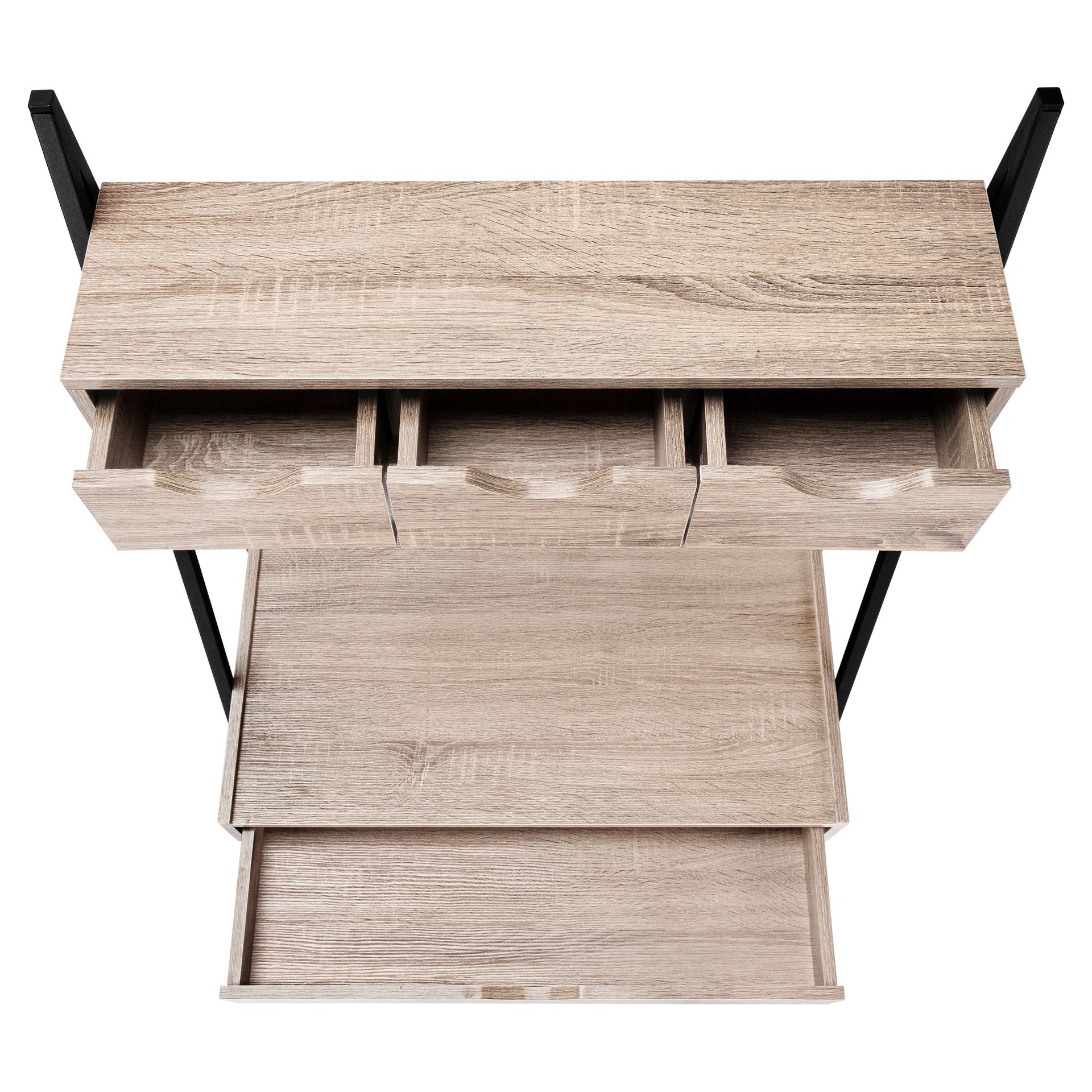 Look up and you have another 3 storage drawers on top with a shelf to place a few books, décorative accessories, and other inspirational objects. This desk can sit in a hallway, your livingroom, bedroom, or any nook where you can have your own creative workspace without taking up too much room.