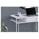 Computer desk with 1 storage drawer and 2 open shelves. Finished on all sides in glossy white and chrome-metal finishes. Versatile style for home and office use.