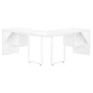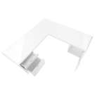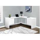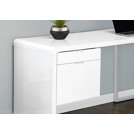 Give your home office a promotion with this extra-large, corner desk in a glossy white laminate finish. The L-shaped desktop is generously sized with a 1.5-inch-thick desktop leading to a waterfall edge look.
