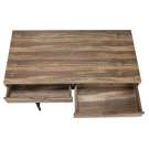 A stylish study in contrasts, this streamlined computer desk will add style to any room. Finished in a brown reclaimed wood-look laminate, the desktop has a substantial appearance thanks to an ample work surface and built-in drawers.