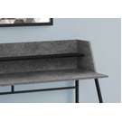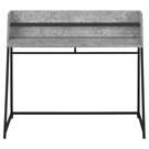Look at your home office from a different angle with this computer desk featuring a storage hutch. Finished in a grey stone-look laminate, the compact desktop has side panels that slant to seamlessly align with the attractive, trapezoid-shaped metal legs for a clean look.