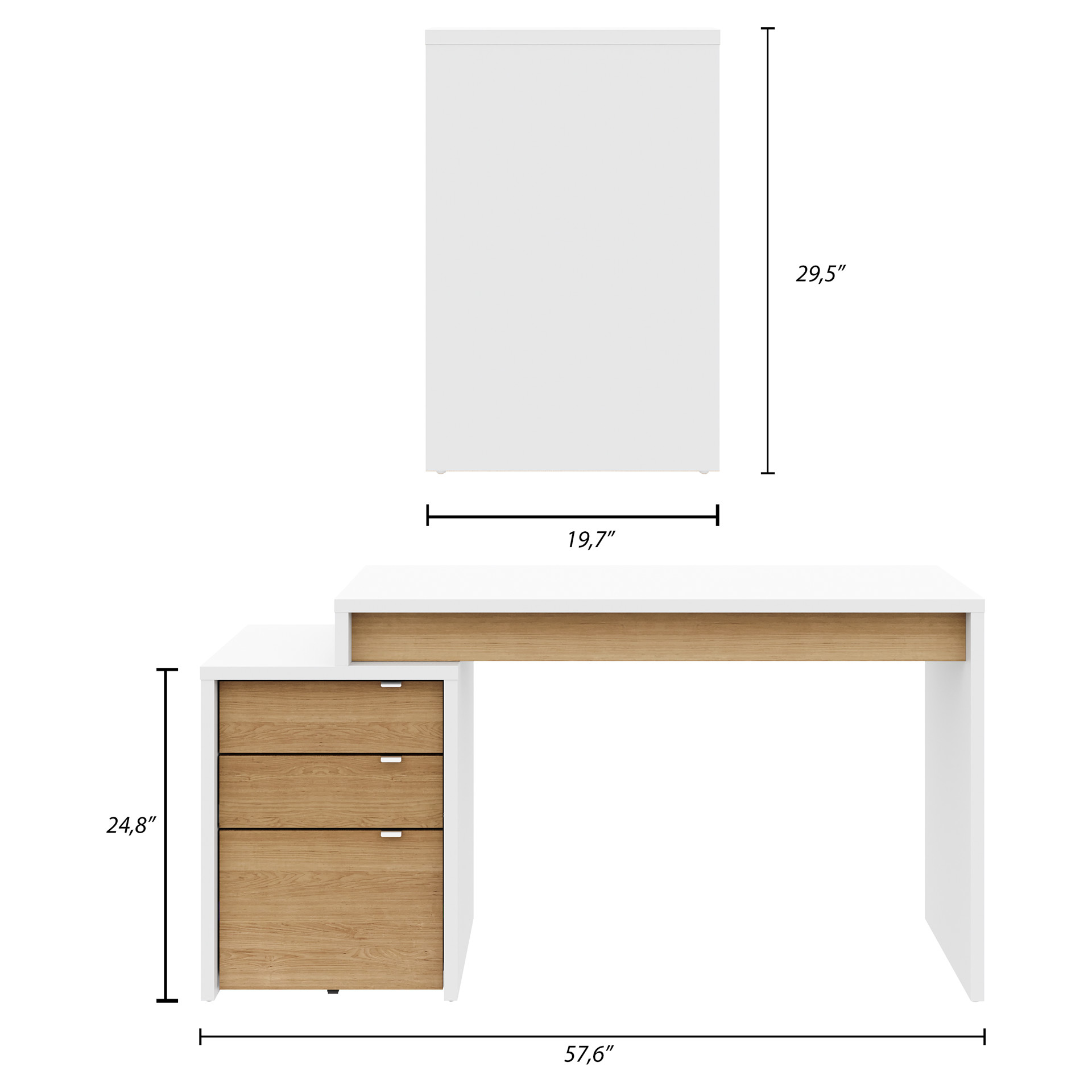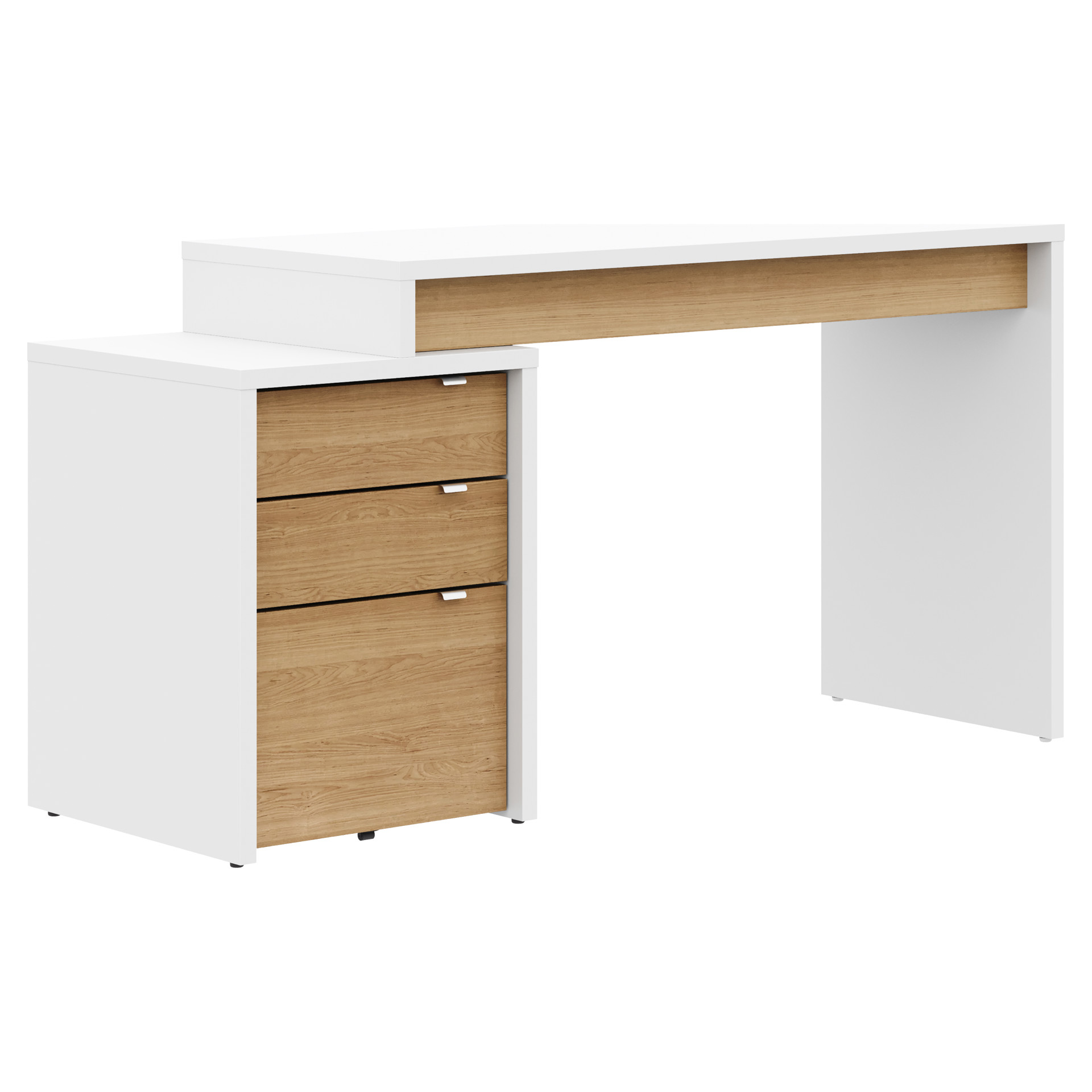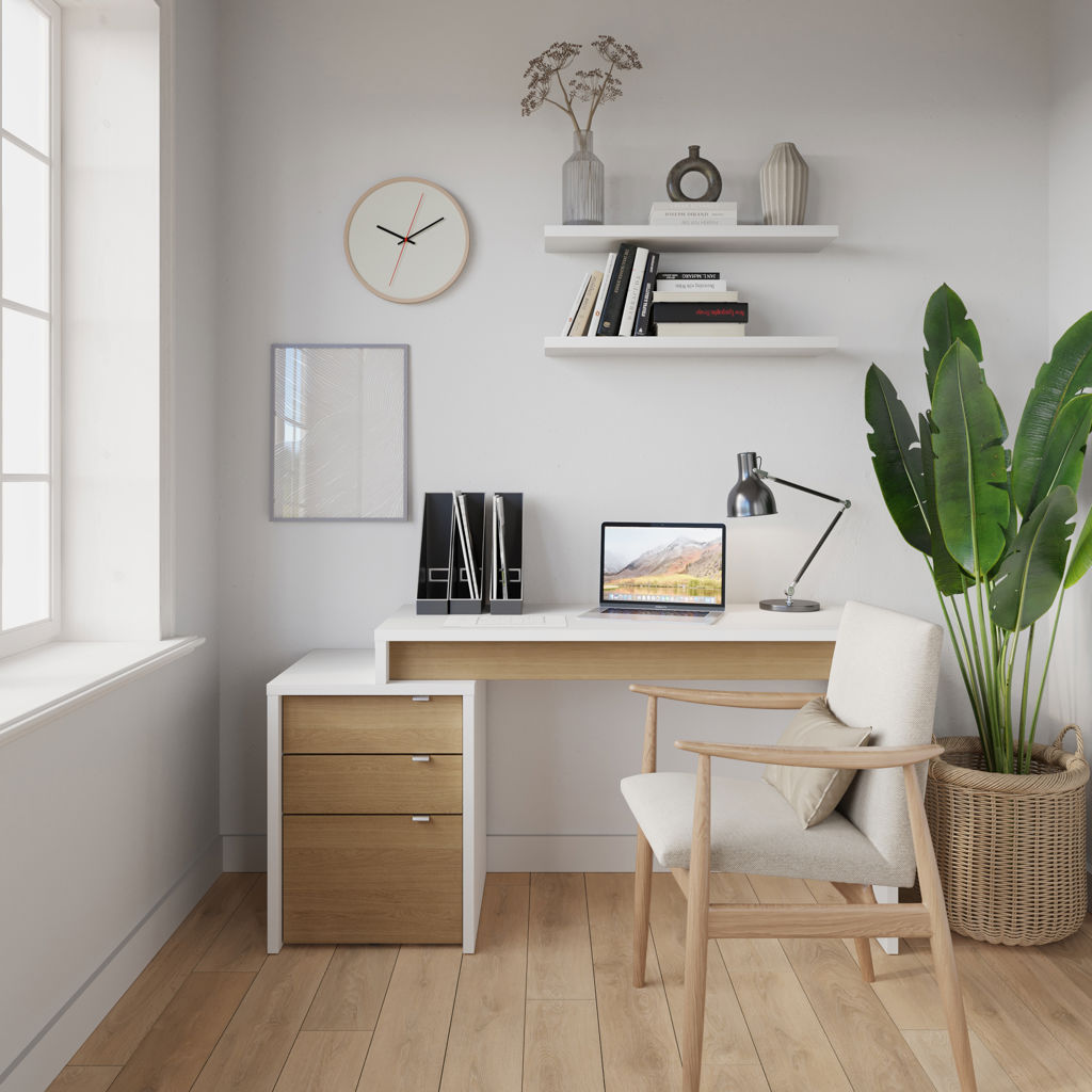 Young and refreshing, Nexera's Chrono collection has it all; its modern white finish with rich natural maple accents and flexible design allow you to create your own on-trend office corner. Chrono set #400921 includes reversible work surface and 3-drawer filing cabinet (211339, 211239). 2 work surfaces can be installed on the Chrono filing cabinet to create a 2-person workspace. The filing cabinet features a legal-size file drawer.