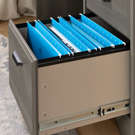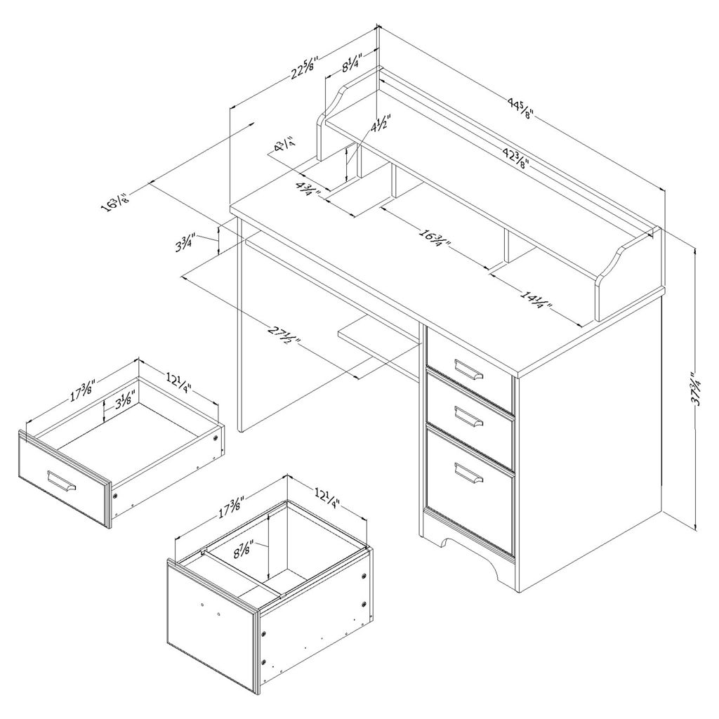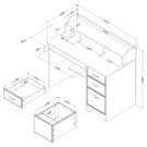 For an organized workspace, file your office items in the top 2 drawers and hang your file folders in the bottom one. The 3 drawers come in different heights to accommodate multiple items. The small fixed shelf under the work surface serves as storage for the laptop when not in use. The other shelf located at the feet is for holding more rarely used books.