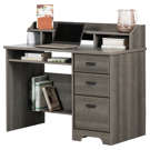 This computer desk is perfect for those who work from home or for a homework area. Its rather traditional look, with its rounded kick and metal handles, will stand the test of time.
