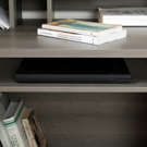 The underside of the shelf provides storage for envelopes and paperwork with fixed divisions. The top of the hutch, completely open, is convenient for storing items you like to have close at hand while working.