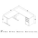 This contemporary, durable collection will fit your specific needs with its multiple configuration possibilities. Its extraordinary style at an affordable price will charm you. The electric mechanism allows you to quickly and quietly adjust the height of the table from 28" to 45". Sturdy work surfaces are made of commercial grade melamine with a thickness of 1/8". The control knob located on the front edge of the work surface allows you to choose the height of the table. 110V electric mechanism. Deluxe PVC edges. Meets or exceeds ANSI/BIFMA commercial quality and safety standards. Fully reversible. Grommets for cable management. Two utility drawers and one file drawer with letter/legal filing system. Drawers on ball bearing slides. The bottom two drawers are lockable. Assembly required. L-shaped desk: 71. 1 x 70. 9 x 30. 4. Credenza: 71. 1 x 22. 4 x 30. 4. Adjustable table: 47. 6 x 24 x 28 to 45. 10 YEAR LIMITED WARRANTY: A warranty against defects in materials and workmanship is extended to the original purchaser.