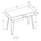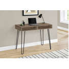 This modern dark taupe faux wood finished desk has black metal hairpin legs for a sleek, retro look.