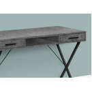 This versatile industrial style desk with a gray faux stone laminate finish can be functional as a computer desk, writing table or study table. Designed for small homes, apartments or condos, this space-saving desk is supported by sturdy black metal X-shaped legs to ensure stability and a comfortable working environment. This desk features two convenient and easy storage drawers for everything you need to store. This compact desk is spacious for legs and a chair. The work surface is ideal for a laptop/tablet, lamp, and other office supplies.