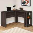 With a generous work surface and built-in storage, this L-shaped computer desk is ideal for students or home offices. The two convenient storage units keep books and school supplies neatly organized. Finished on all sides in wood-look laminate, this versatile, space-saving desk is designed to be placed in a corner but can be positioned anywhere in a child's room, dorm room or home office.