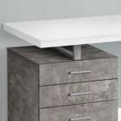 Finished in a grey concrete-look laminate that contrasts the white desktop, the drawer unit includes 2 small drawers and 1 large drawer with a bar for hanging files and offers space for items you want to keep off the work surface.