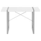 This stylish industrial-inspired computer desk could easily pass for an accent table. It features a spacious, thick-panel desktop finished in a smooth white laminate and sturdy metal legs in a contrasting silver finish.