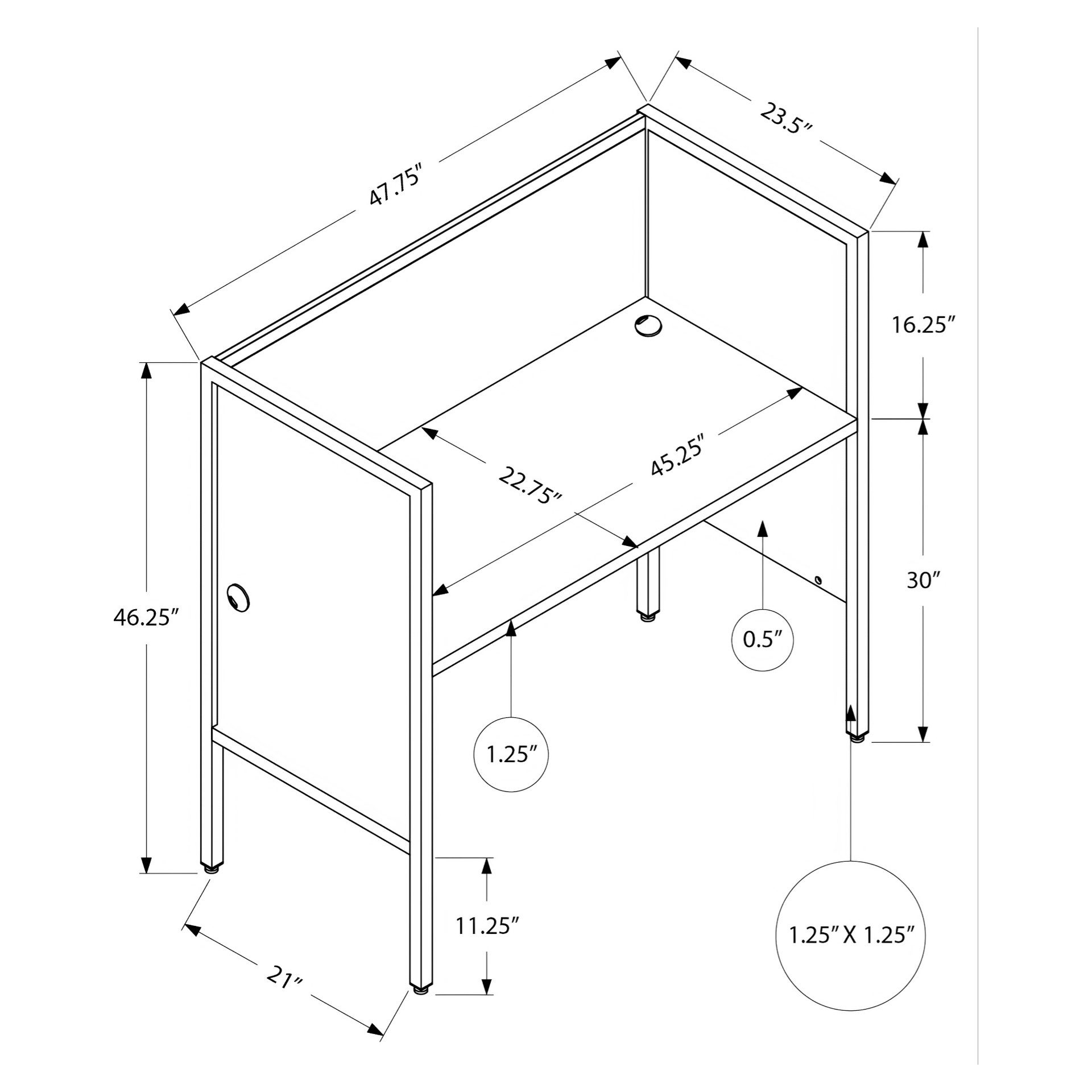 The easy to assemble desk features a cable management hole in the corner to keep cords organized and out of the way, making it a space saver in your office cubicle. The easy to clean top ensures a pristine work surface at all times.