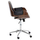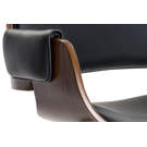 This retro-inspired office chair is the latest in our Urban Unity collection. The adjustable seat with a curved wood veneer back complements the onyx faux leather. It features a stainless steel base and casters for mobility.