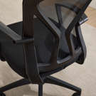 Black mesh fabric that allows air to circulate covers the swivel seat and back.