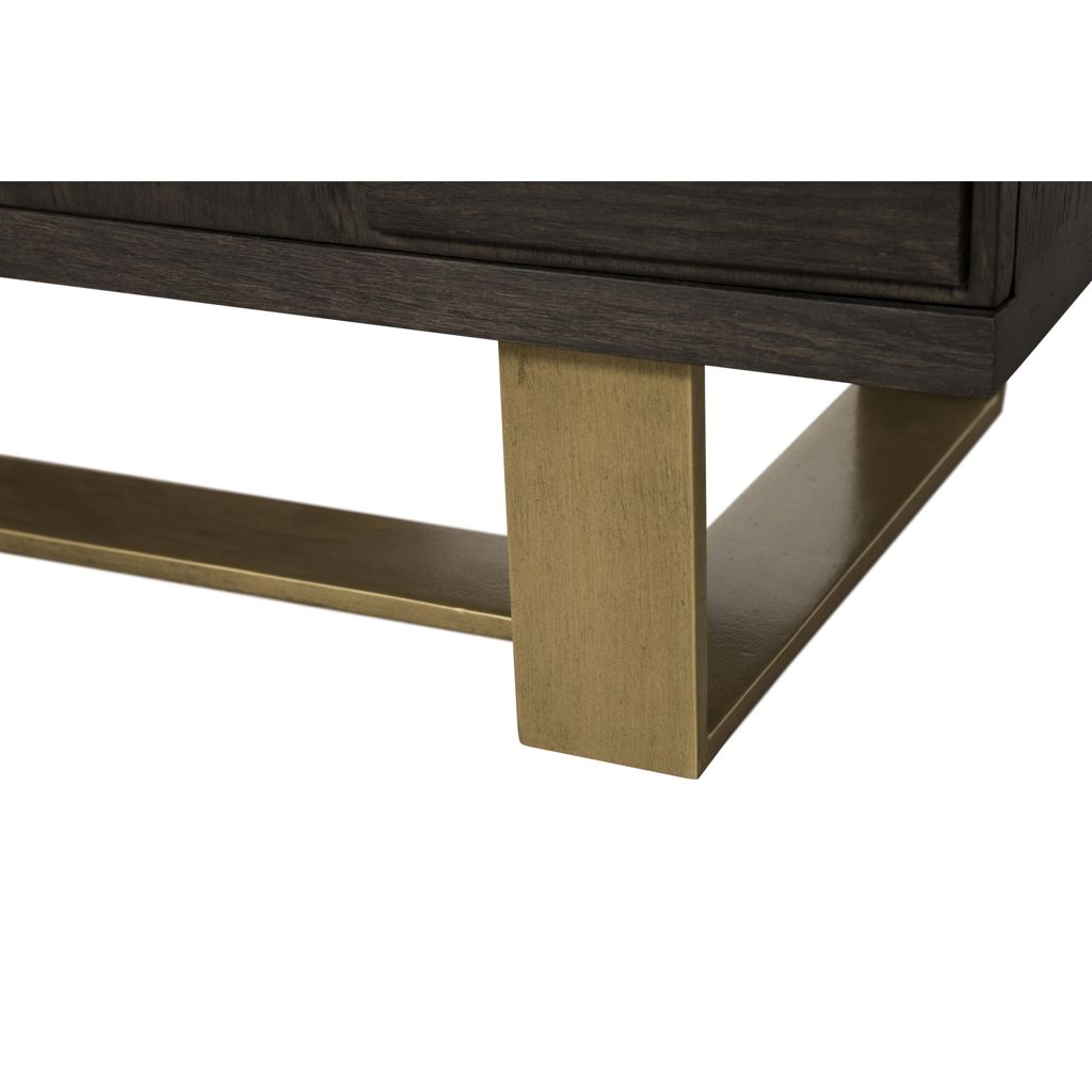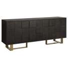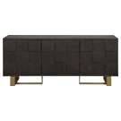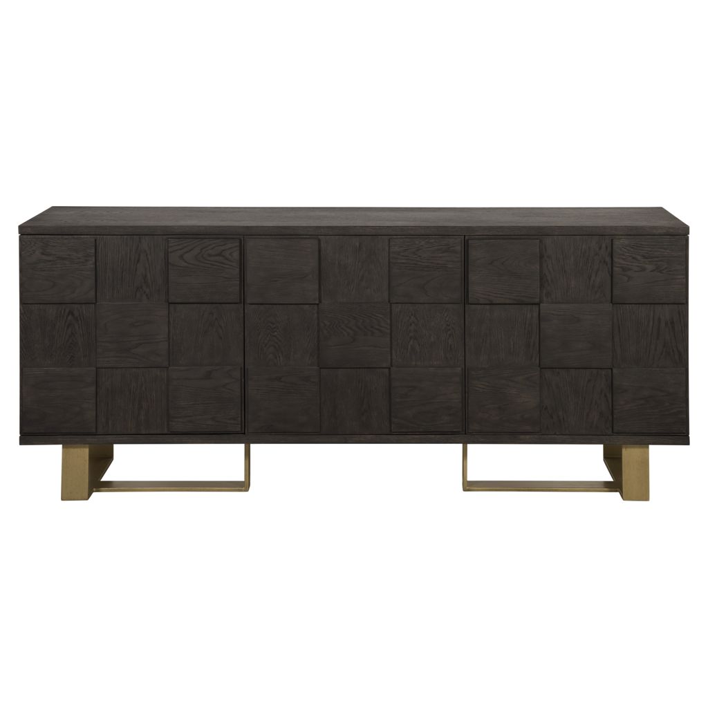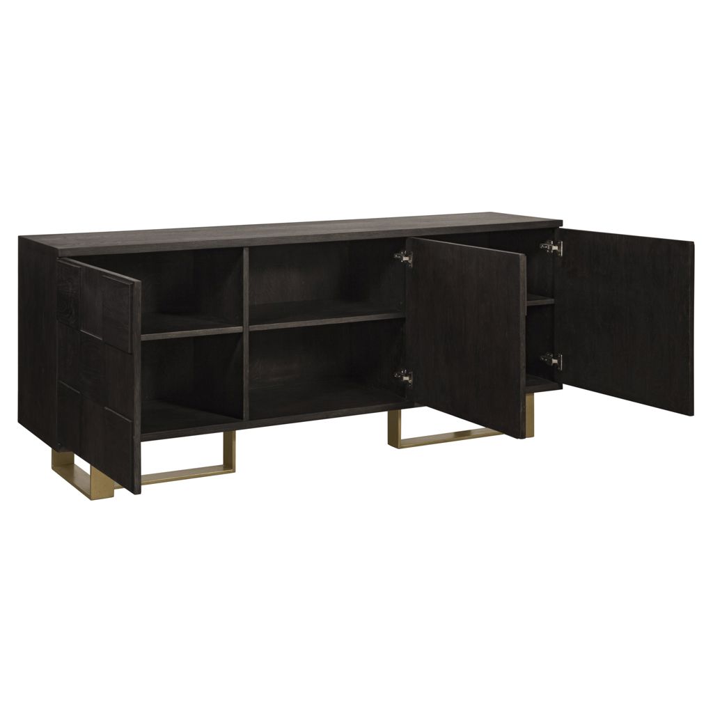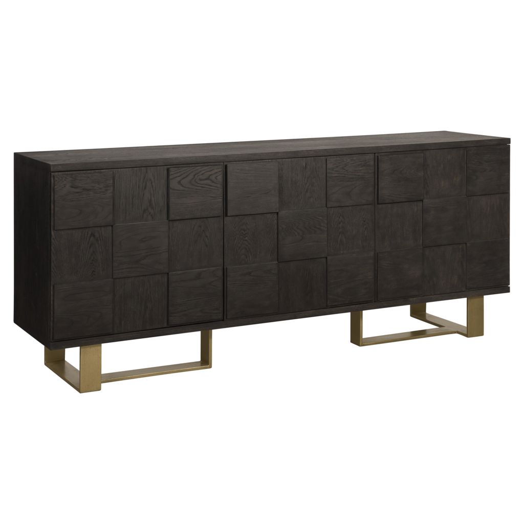 This bold sideboard from our MIXT collection will bring style and warmth to various dining and living spaces. Crafted with smoked acacia wood and an antique brass frame. Three large cabinets with three-dimensional checkered wood doors provide ample storage. Suitable for residential and contract environments.