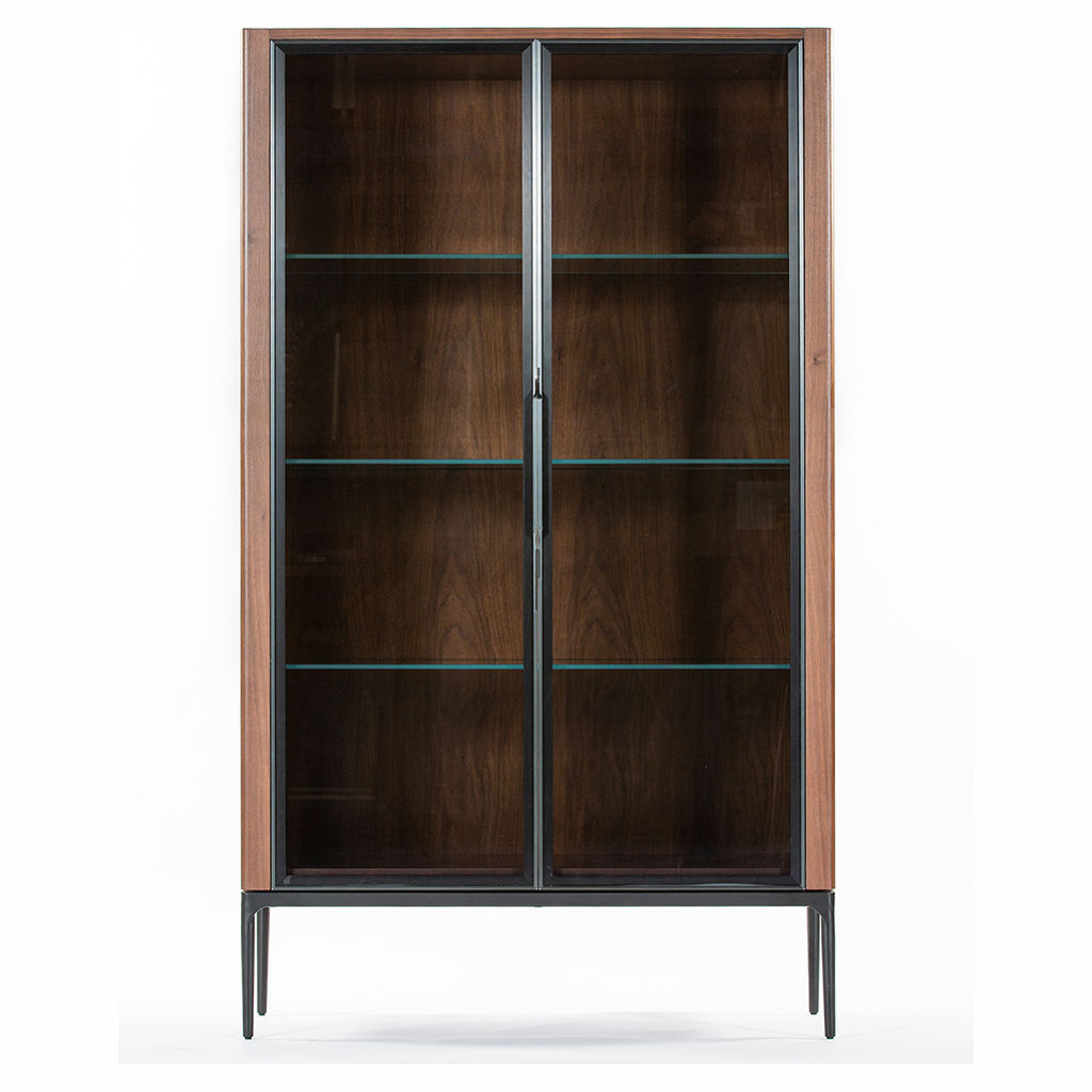 The four spacious compartments, separated by glass shelves, provide optimal storage while keeping your finest items visible. The richness of the walnut veneer’s grain creates a natural texture play that brings warmth to the space.