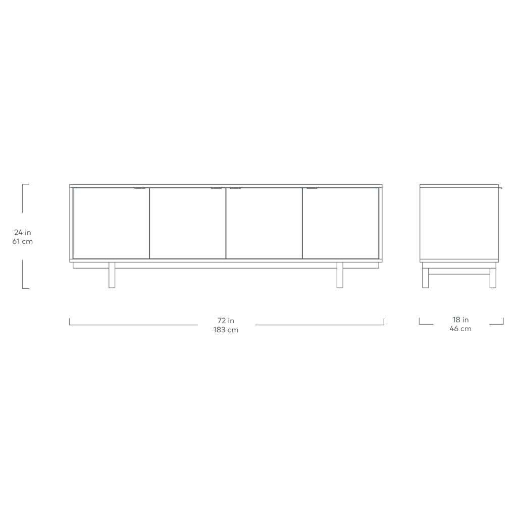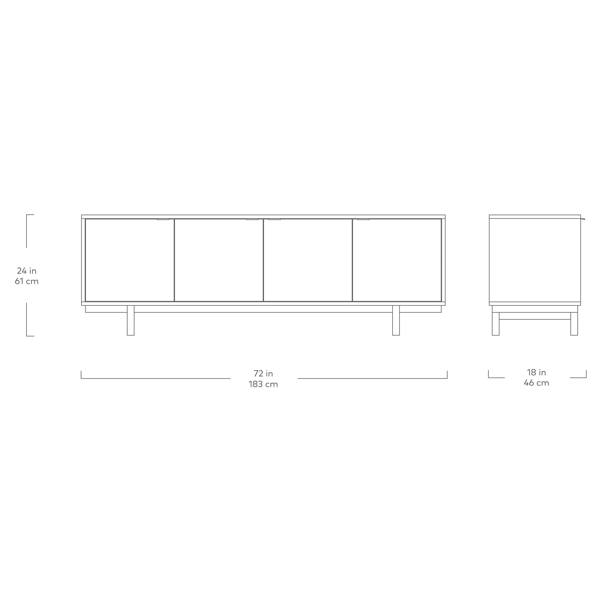 The credenza is part of the Belmont storage series, matching perfectly with the Belmont end table and multimedia stand.