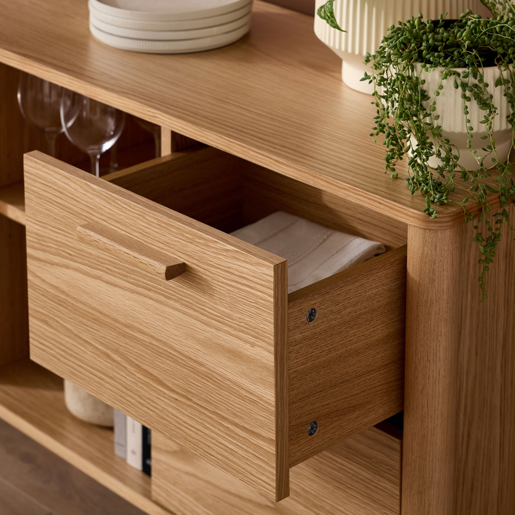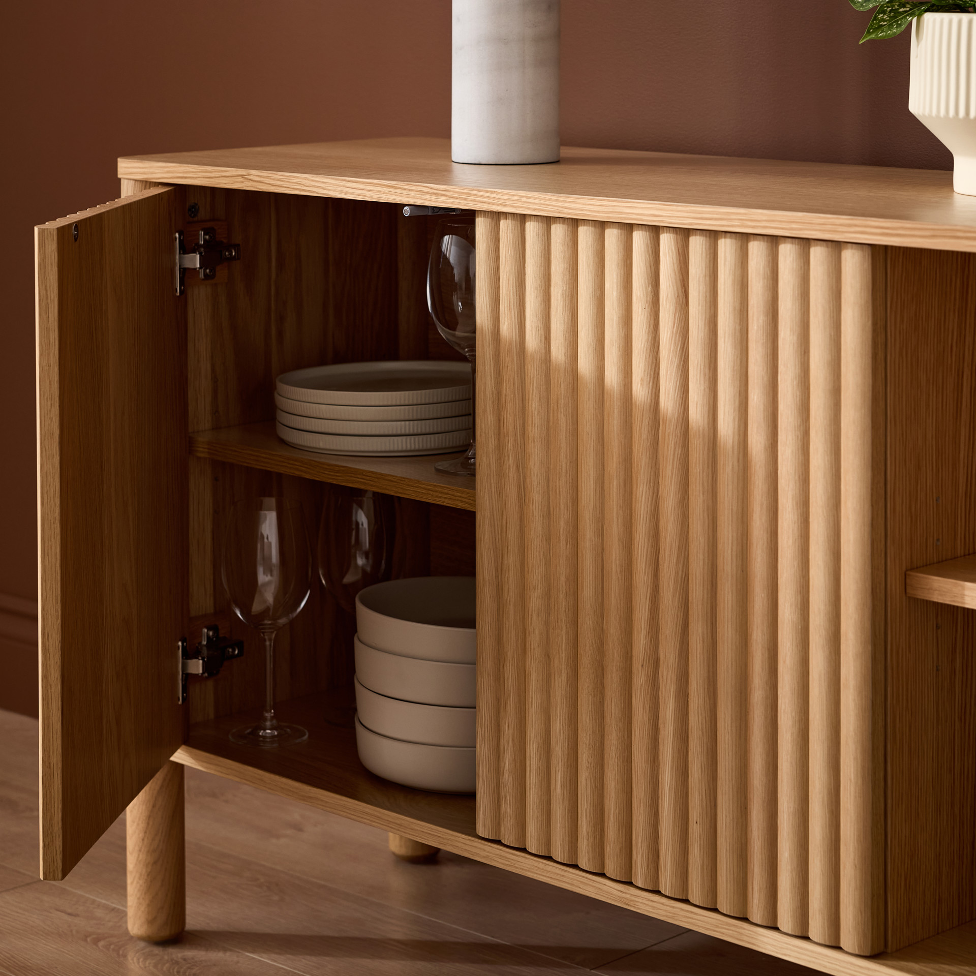 • Fluted doors – Modern aesthetic detail that adds character to the piece
