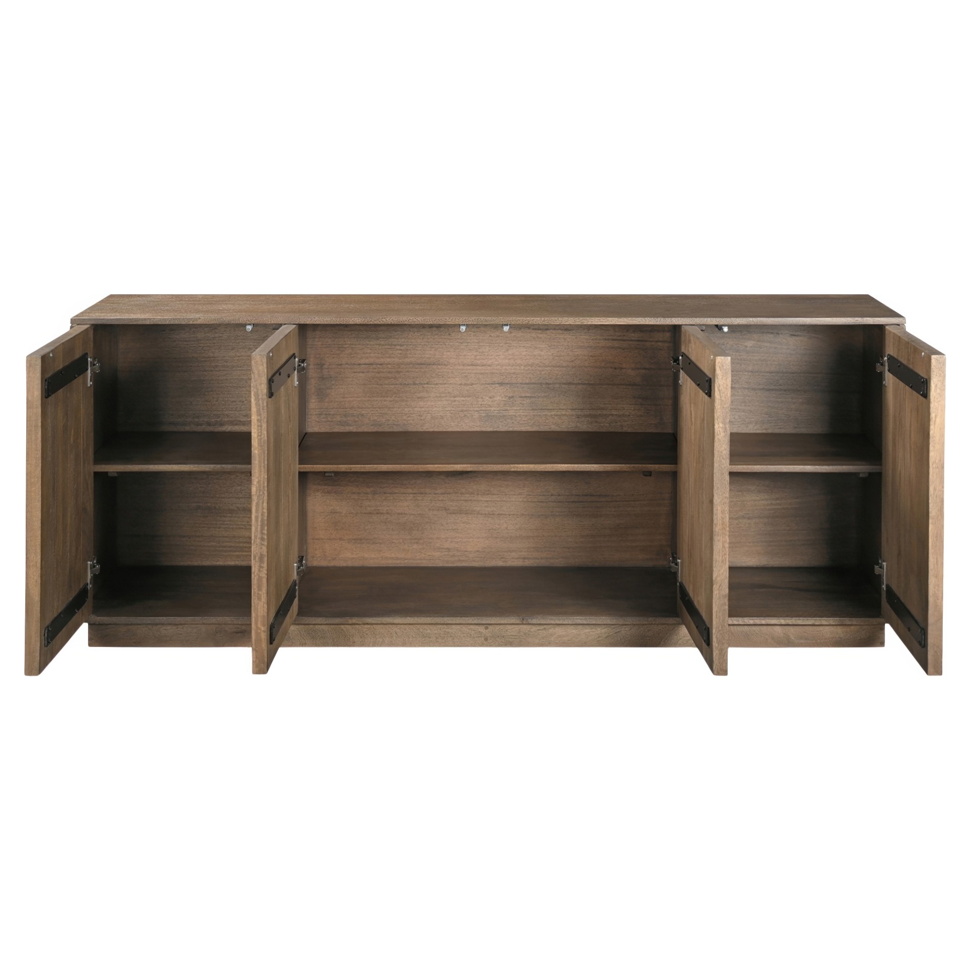 Four doors with magnetic catches reveal two adjustable interior shelves, bringing subtle functionality to any space.