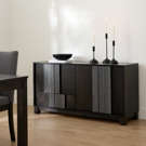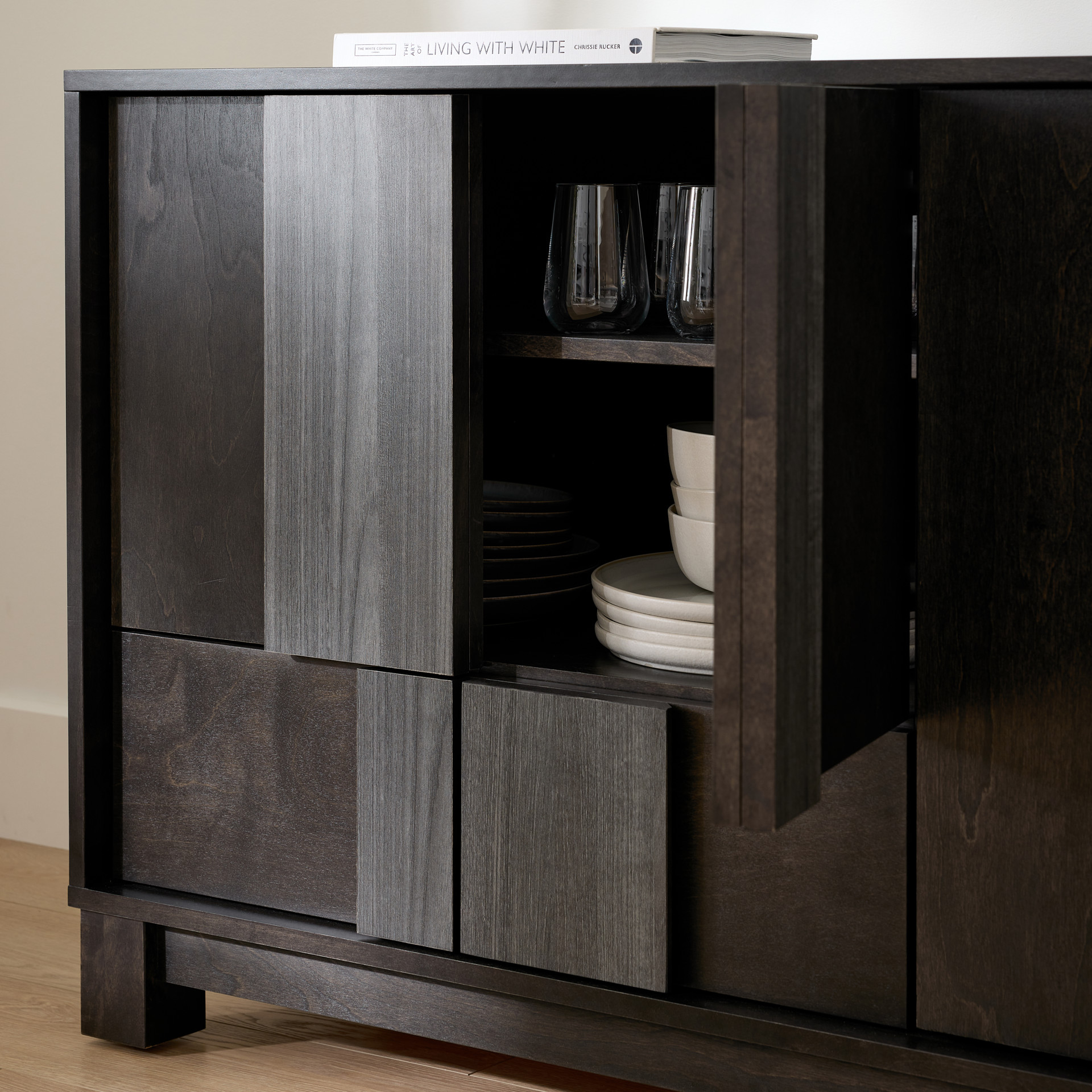 Featuring four doors that conceal two adjustable wooden shelves, it provides customizable storage for your dishes, table linens, or accessories.