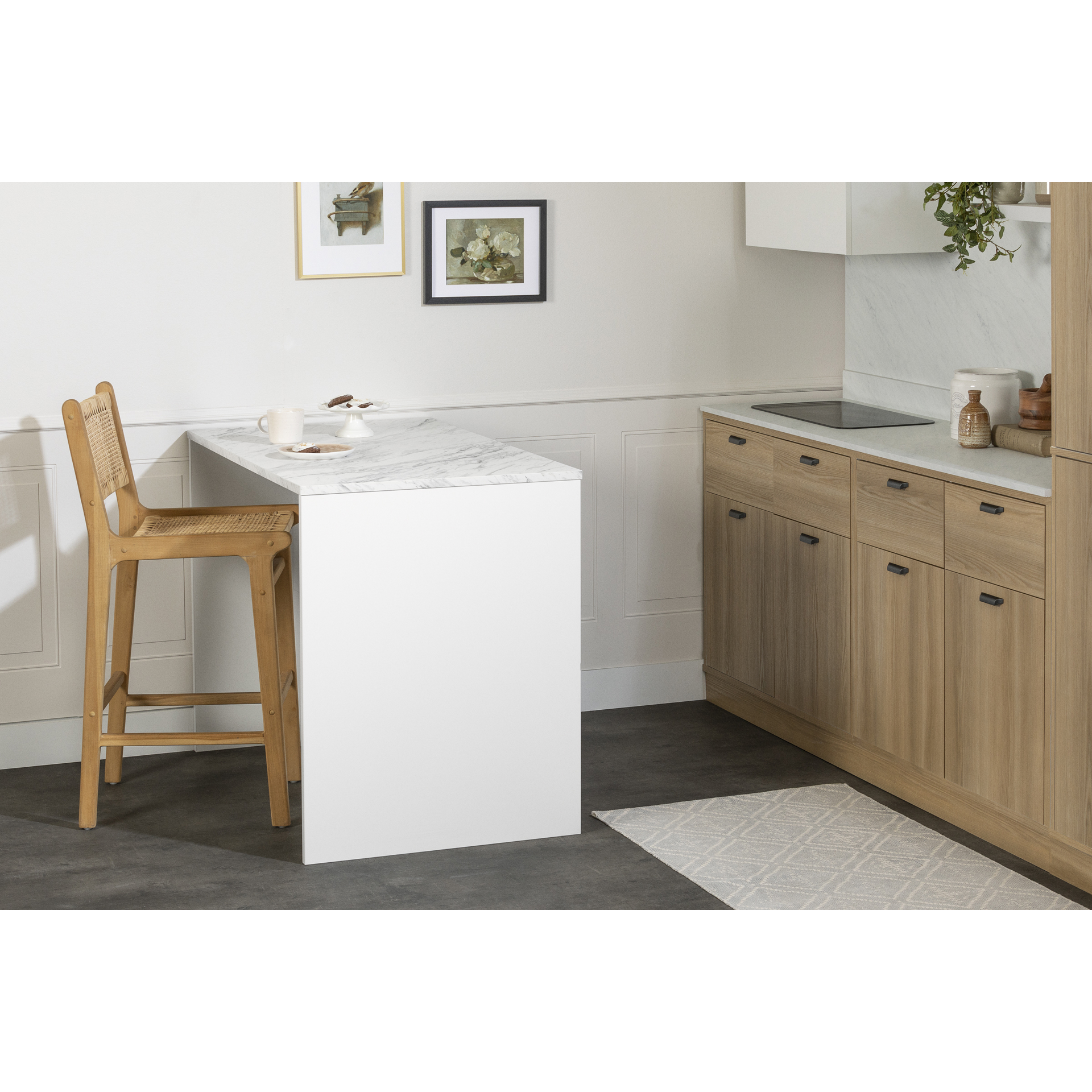 Placed against a wall or in the center of the room, it will give you all the space you need to prepare delicious meals and live unforgettable moments in good company. Add 2 stools to create a friendly gathering place.