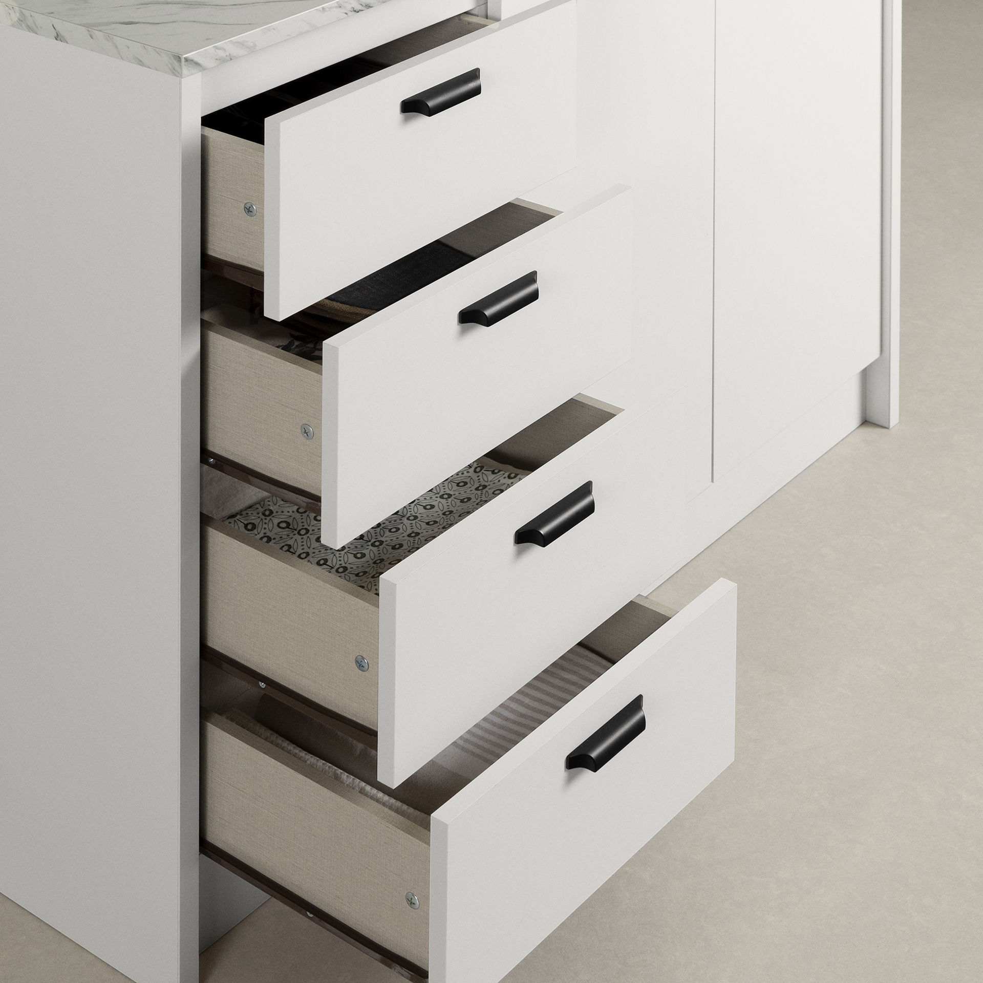 LARGE SURFACE: The worktop, which contrasts beautifully with the rest of the island, does not only serve aesthetic purposes. Water and scratch resistant, this melamine surface will allow you to cook your best recipes in total peace of mind.