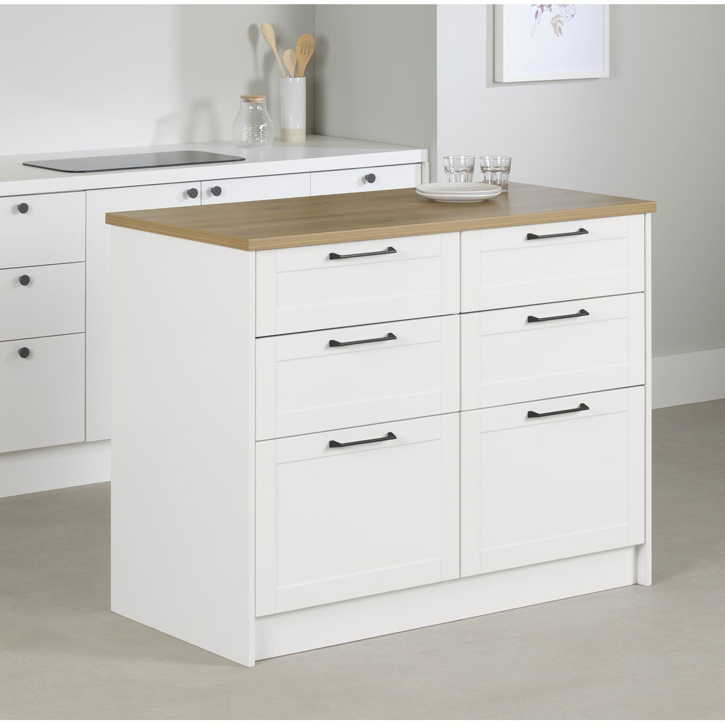 This Island, imbued with a rustic charm, warms up the atmosphere with its farmhouse style. Delicate finishes like metal handles and shaker-style drawers contribute to its authentic and elegant appearance. Versatile in its placement, it can be positioned at the heart of your kitchen, or against the wall, adapting to your needs and desires.
