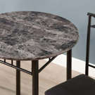 This three-piece bistro set offers classic style to suit any decor. This round table has a solid grey faux marble top and sturdy dark grey metal legs.