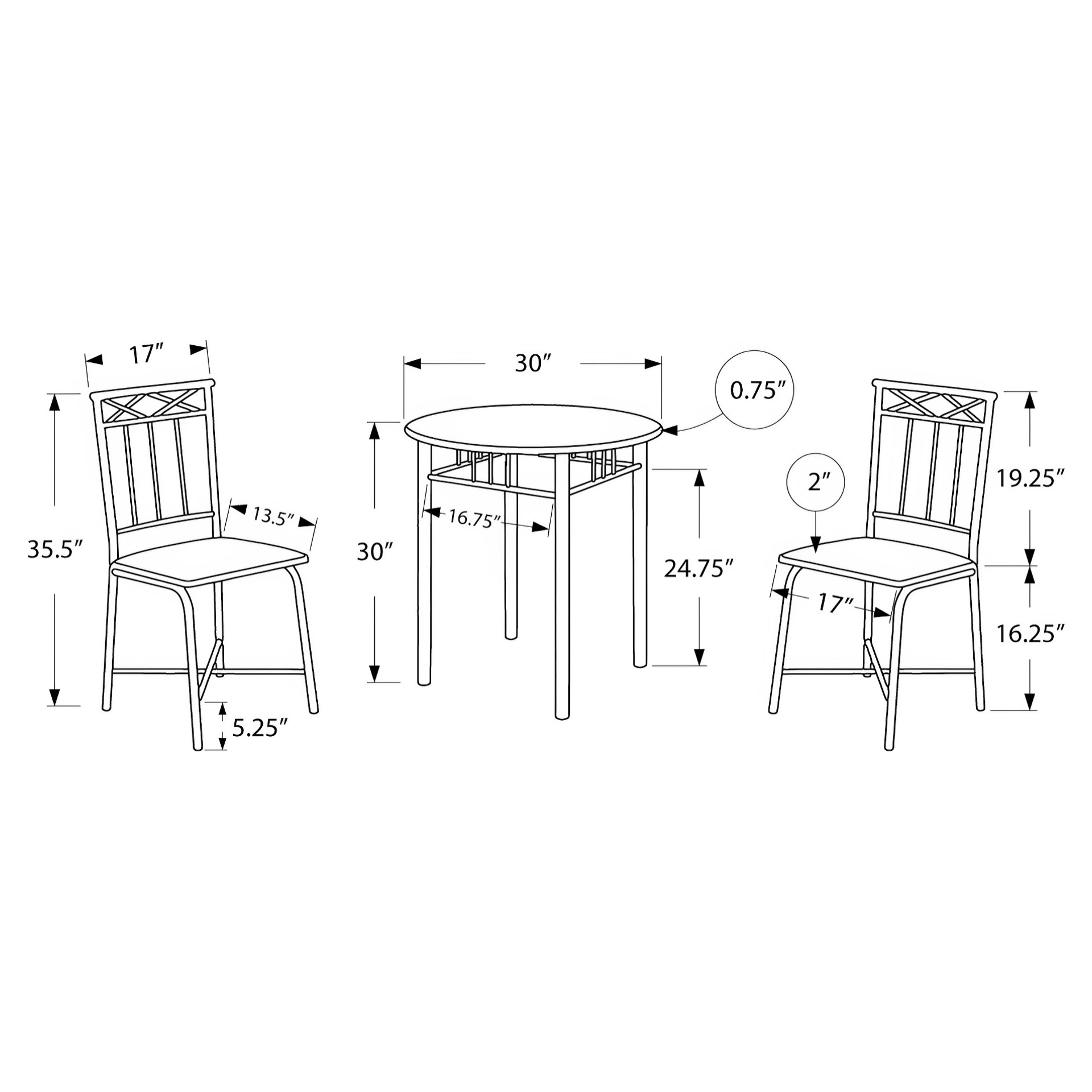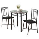 This set creates a rich ambience for you and your family. Three-piece set includes two chairs and a bistro table.