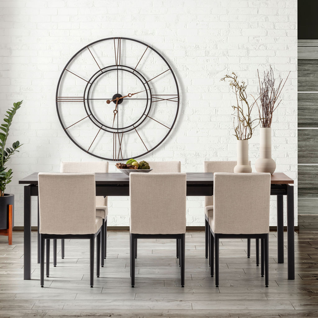 Transform your everyday meals into cherished moments with this elegant dining set. The walnut table, with its rich and deep finish, creates a warm and welcoming atmosphere. Its sleek design blends effortlessly with your existing décor.