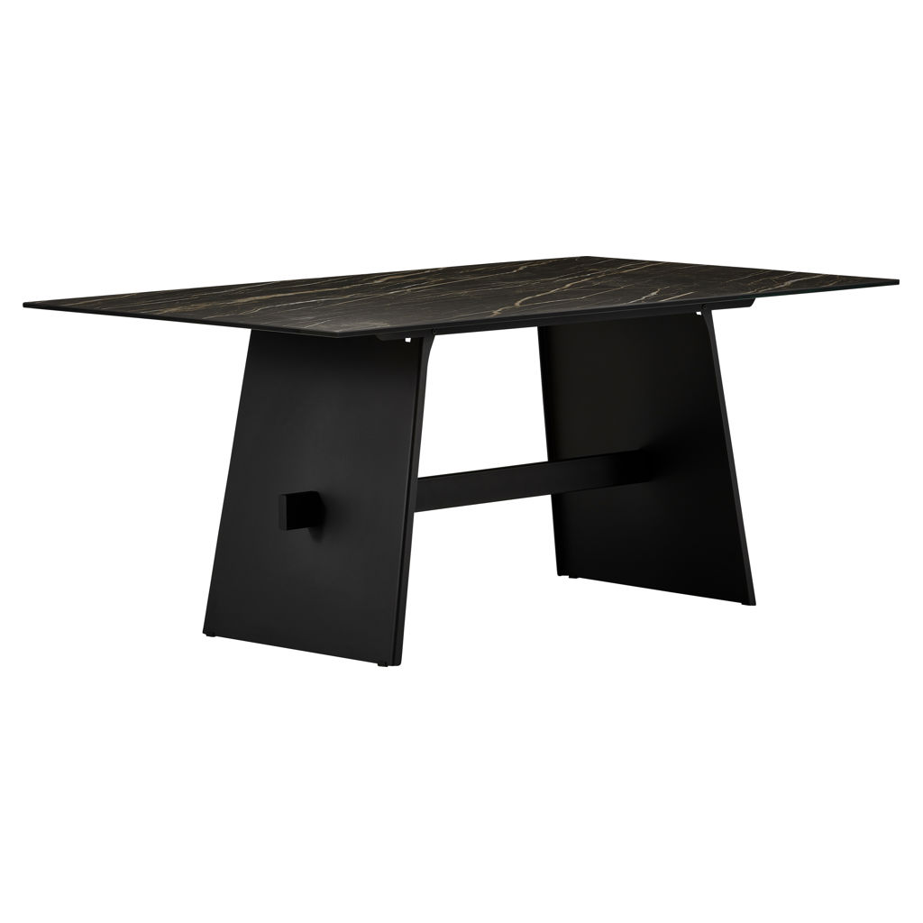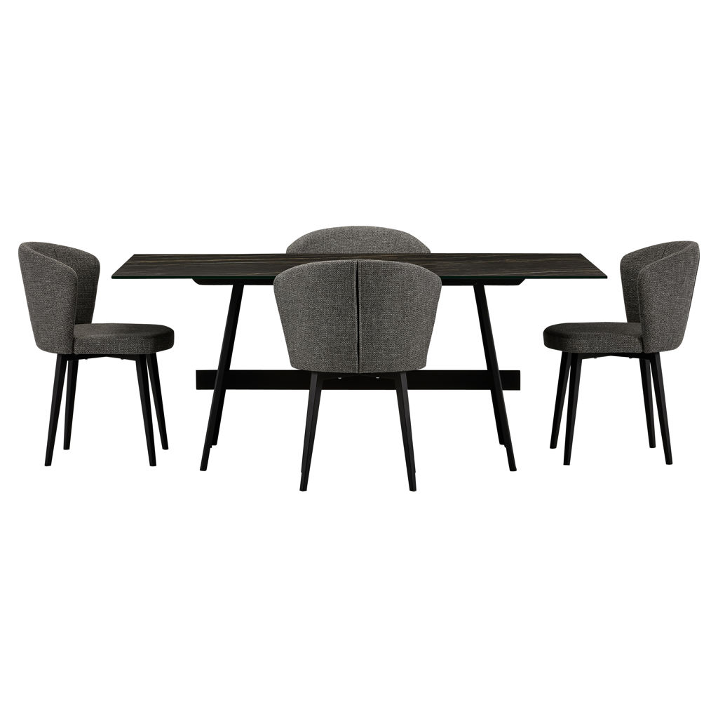 This blend of premium materials creates a warm and inviting atmosphere where family and friends will love to come together. The porcelain surface is highly durable, stain-resistant, and easy to maintain, while the chairs’ slender black legs add a subtle touch of elegance.