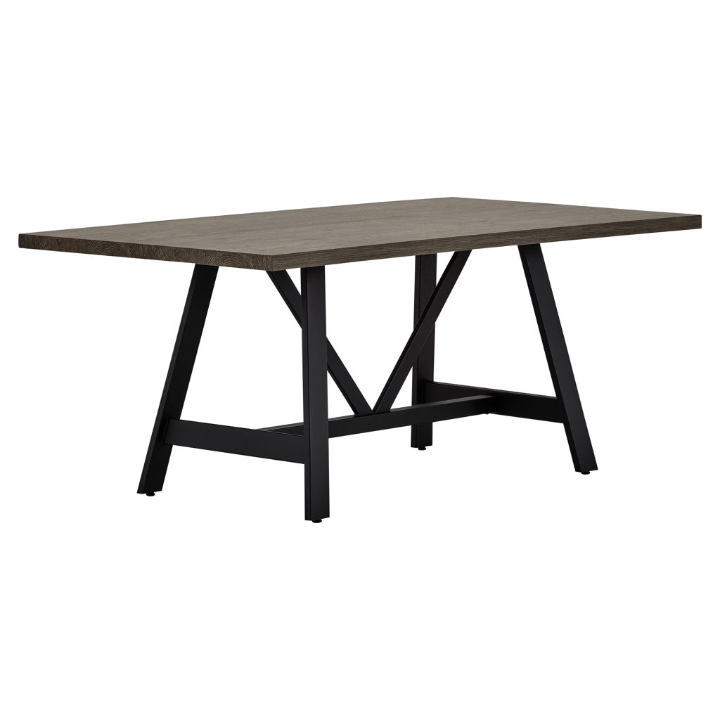 The table, crafted in grey-washed wood-look melamine, brings warmth and character to your space while its durable surface makes daily maintenance effortless.